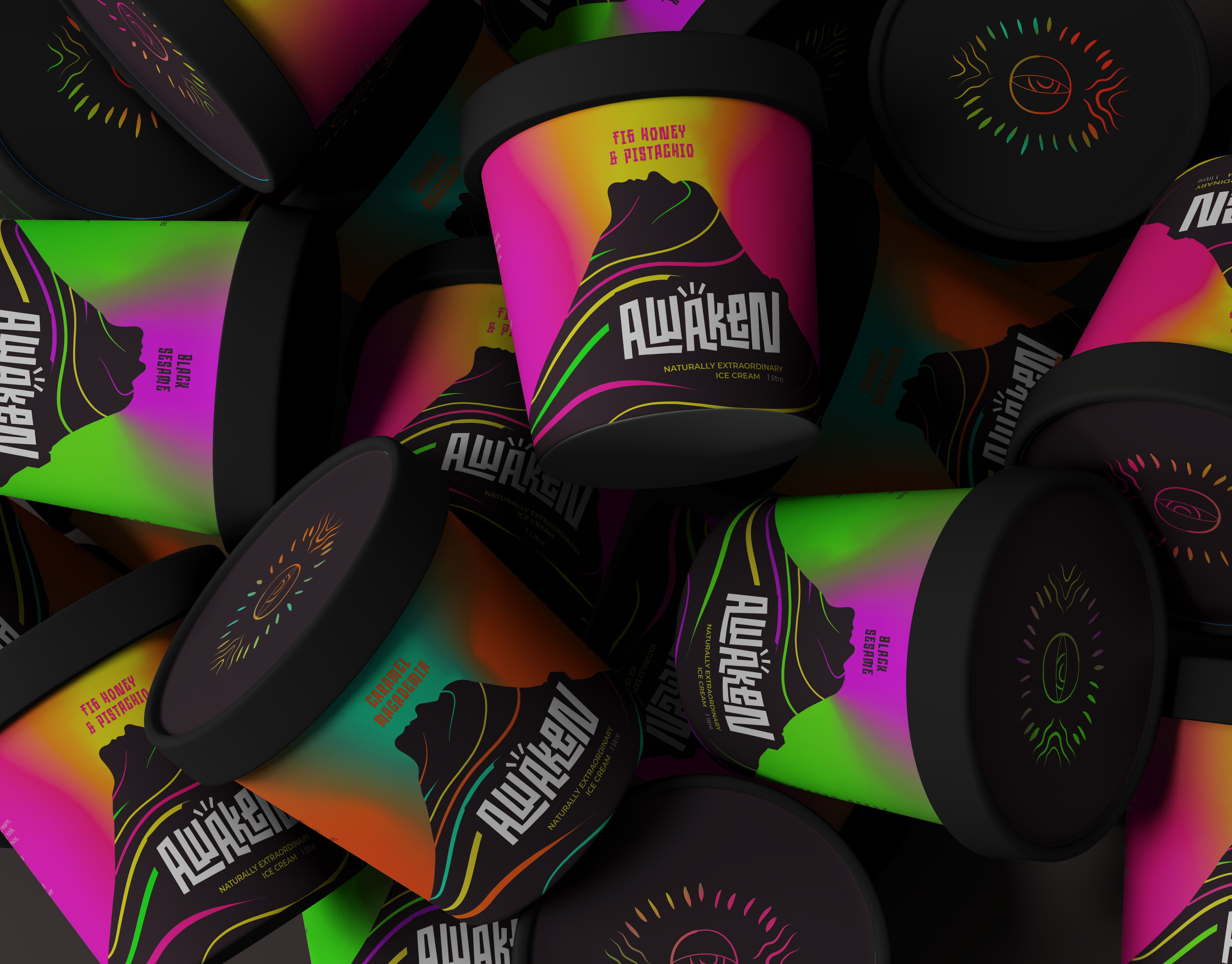 Offbeat packaging and visual identity for a sustainable ice cream venture, born from the brooding energy of Auckland’s ancient volcanic field.