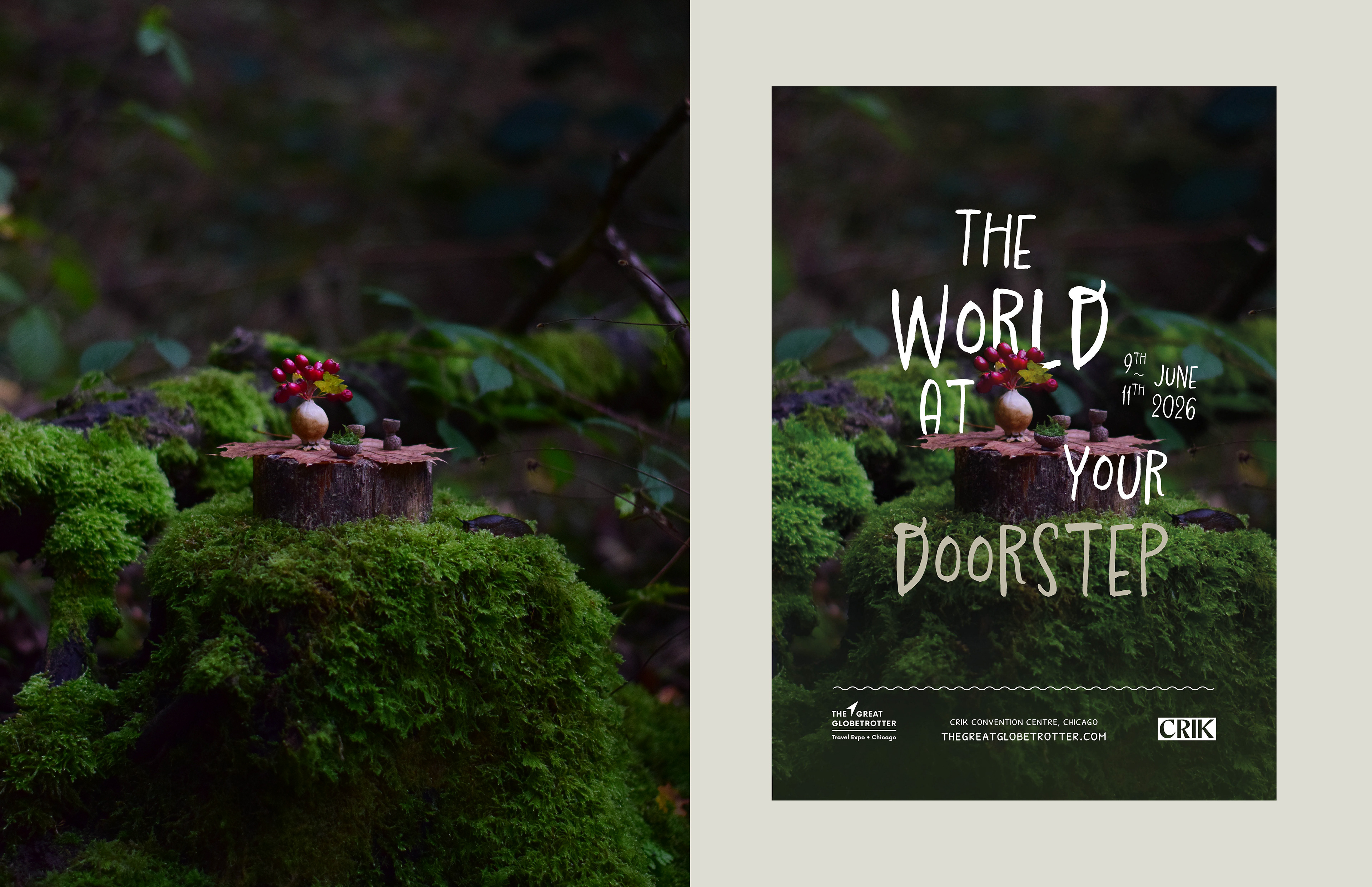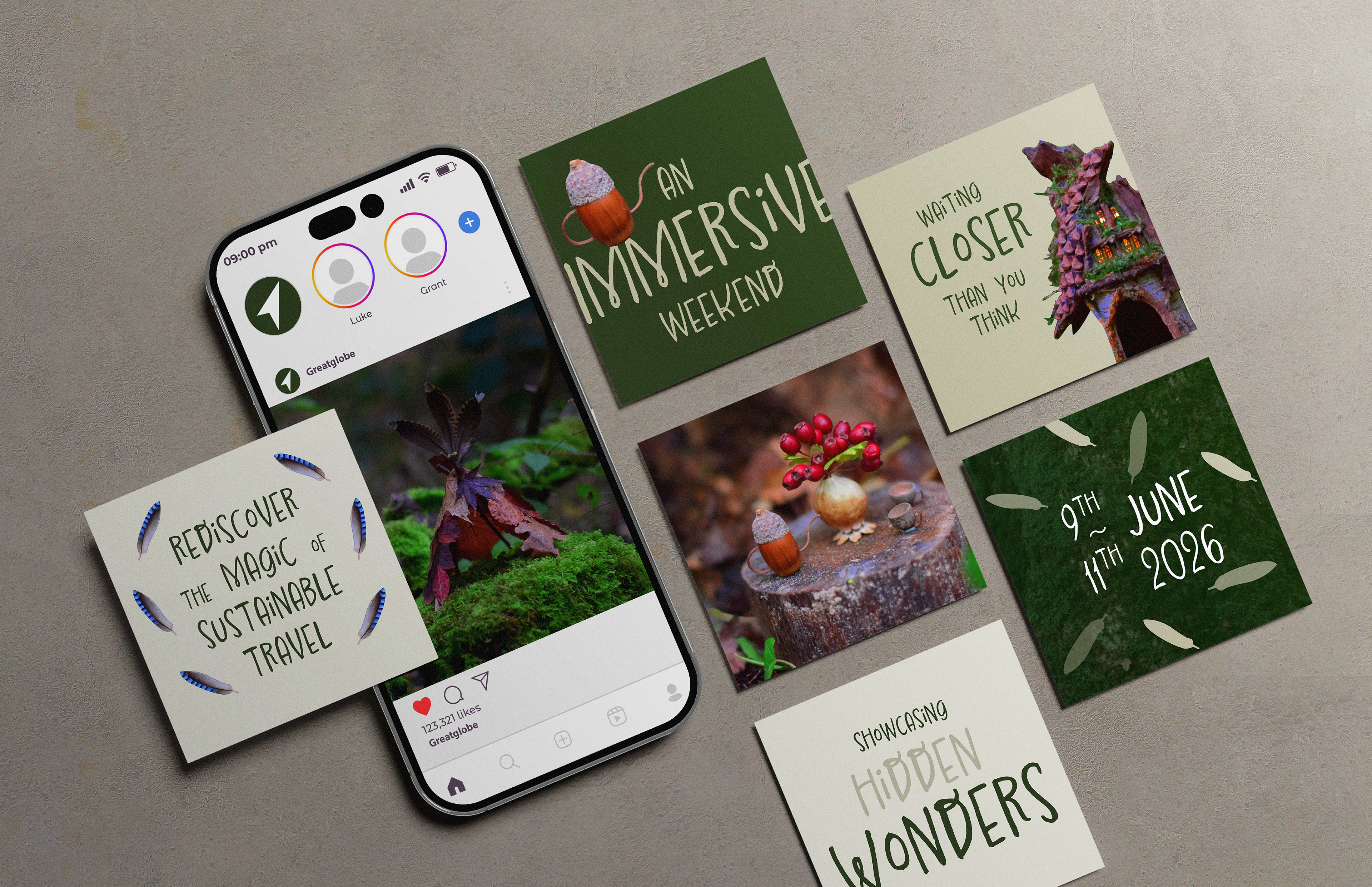 This enchanting, handmade visual identity brings to life believable fairytale scenes using natural materials, to promote a sustainable travel exhibition.